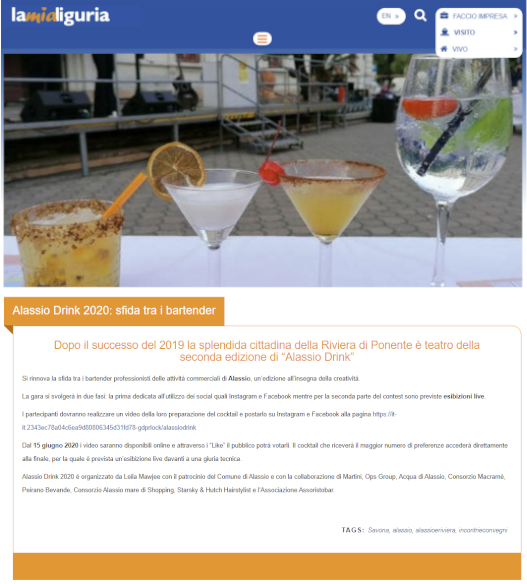 Il suo cocktail Alassio se l’e trovato. Almeno quello per il 2019. Ora, sotto a chi tocca, qui e altrove. Perché l’idea di individuare ed eleggere il drink simbolo di una località non è soltanto un’eccellente spunto di marketing del territorio. È roba che fa crescere il livello dell’ospitalità tutta, mette a confronto le idee, spinge l’intero sistema a migliorare: se ci si mette in vetrina, si vorrà apparire al meglio.