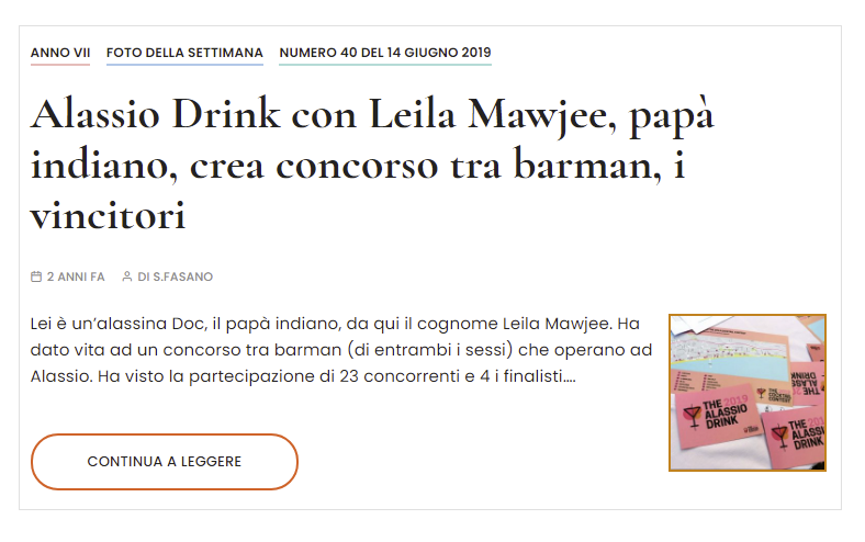 La notizia è che Alassio avrà il suo drink. Un cocktail tutto suo, scelto a furor di popolo da coloro che fino al 6 maggio assaggeranno quelli in gara nei bar della città del Muretto: dopo la prima selezione, ne sono rimasti tre. Come ogni entusiasta sono convinto che un drink possa aspirare ad essere, quasi come un vino, parte integrante dello spirito del luogo, come il Barolo ad Alba, il Prosecco a Conegliano o il Nobile a Montepulciano. Certo, un cocktail influenza meno il paesaggio di un mare di viti in rigoglio che risalgono le onde dei colli. Ma a compensare siamo noi quando avviciniamo alla bocca un Bellini a Venezia, un Manhattan a New York oppure a un Sazerac a New Orleans o un Mojito all’Avana. Il drink local non è soltanto un pezzetto dell’esperienza che facciamo da turisti. È l’aspettativa di quell’esperienza a farci scegliere un luogo. E così, il cocktail Alassio che sarà scelto il 7 giugno aggiungerà il suo sapore e il suo colore, il suo bicchiere e il suo aroma (Oh, il profumo di assenzio in un Sazerac…) all’immagine che abbiamo di Alassio. A Ernest Hemingway che discute con Mario Berrino su come dovrà essere il Muretto, la hall of fame italiana. Alle belle di Miss Muretto, così sfolgoranti da venir condannate con l’accusa di far ombra al Muretto. Alla Dolce vita nelle estati anni Cinquanta con la spensieratezza da Sapore di mare, sole senza nubi e senza i cupi presagi felliniani. Ma quel che mi è piaciuto più di tutto è che l’idea della gara per l’Alassio sia venuta a una signora, Leila Mawjee, che nulla c’entra con shaker, bar e mixing glass. Le è venuta così, per amore della sua città. È di idee così, e della generosità per realizzarle, che abbiamo bisogno. Ho già voglia di bermi un Alassio...